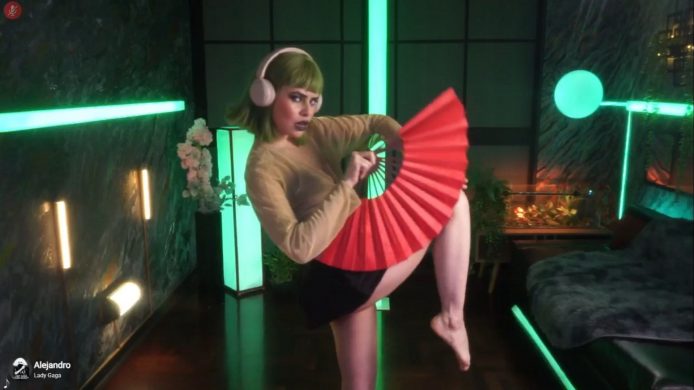 I love the way she smiles for the camera while holding up a peace sign with her fingers and giving everyone a tiny lil’ peek of her butt cheeks. Things get especially fan-tastic when she grabs a red fan and begins using it in various seductive ways. Her feet get to be the star as she takes a break and sits down, only to play with her legs as high up in the air as they can go.