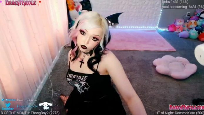 With bat wings on her hair that decorate a sexy ensemble that’s gorgeous and metal, DarcyNycole cams while showing us a special set of skills that all focus on showing us multiple angles of her beauty.
