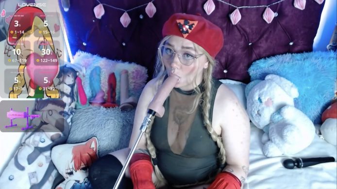 Dog tags bounce, attitude snaps, and suddenly no one’s watching the health bars anymore. One salute and the entire room loses frames. The pigtails aren’t for show—they’re aerodynamic, emotionally destabilizing, and probably part of her hitbox. And there’s a dildo in front of her face to give her a really good time too. All things considered, she’s looking pretty ready for action.