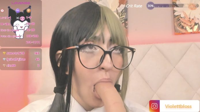 Violettbloss is the student council’s worst nightmare and the hallway’s best spectacle—split-dyed schoolgirl chaos in motion. Half green, half black, all attitude. Her hair looks like it’s about to start its own anime arc, and honestly, the rest of her probably already has. Glasses? Check. But not the quiet bookworm kind—the hacks the grading system and still finishes her manga kind.