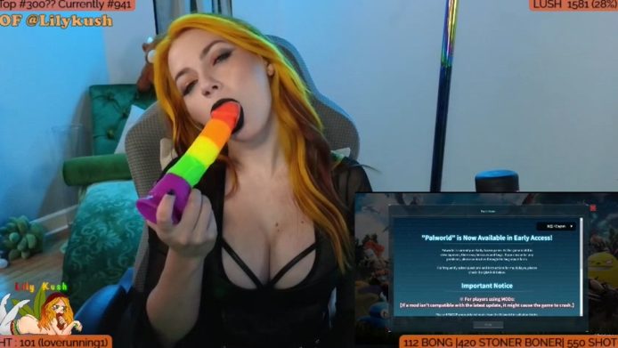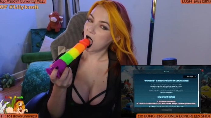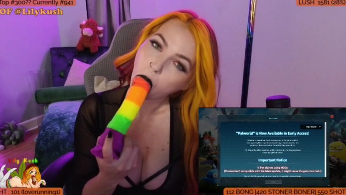 There’s a magnetism about LilyKush, about the dark makeup she cams with, and in how she contrasts it with a colorful dildo that gets to feel the love from her soft tongue and her luscious lips in a blowjob tease that she delivers calmly and with the utmost eroticism right before she starts indulging her gamer side by playing Palworld.