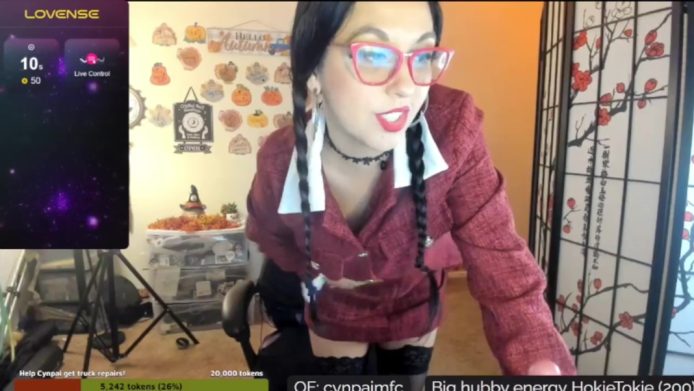 The lovely Cynpai wears a formal and sexy outfit for this stream. It’s great to see her playing with the style too, as she gives us different viewpoints in which to admire it, my favorite being the POV where it looks like we’re down at her feet looking up as she removes the jacket or spanks her tight booty.