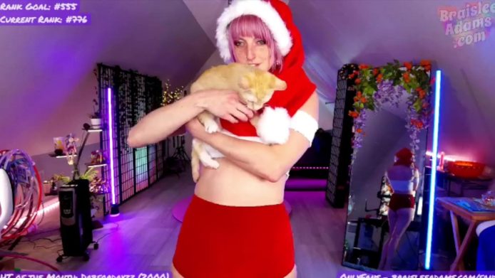 The warm and cozy aura is my favorite, and I love that BraisleeAdams is enjoying a beverage that looks very Christmassy already, and I also adore the moment when she picks up her pet kitty and shows it to us, as I feel that the heartwarming sensations increase with this treat, which is something simply fantastic to get ready for the winter fun through both adorableness and a nice dose of sexiness to go with it.