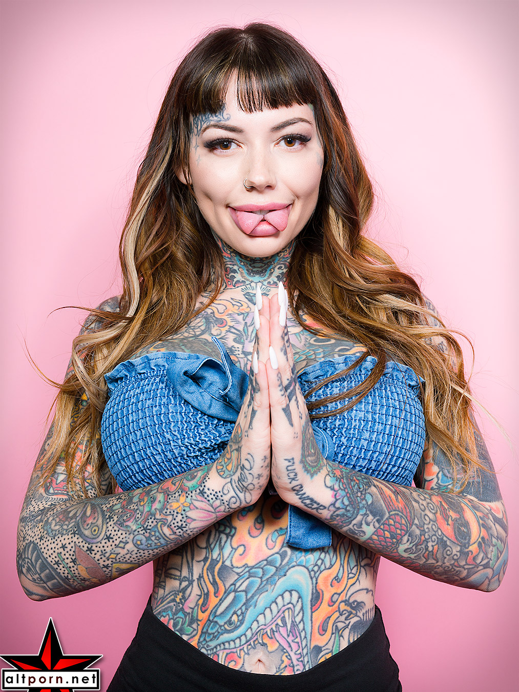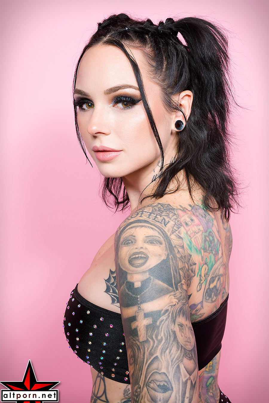 This series was shot at AVN. Every year, AVN produces a huge Adult Entertainment Expo in Las Vegas. AltStar Magazine‘s distributor Zinetastic had an exhibitor display where they gave away thousands of copies of AltStar Magazine #25 (also available in digital edition.) In addition, the Zinetastic fun included AltStar Hall of Famer Forrest Black and AltStar and GFY Hall of Famer Amelia G shooting portraits on site in one of their signature location studios. We have four galleries of their incredibly beautiful portraits to post here and we will have some of our favorites in an upcoming issue of AltStar Magazine. We love the amount of personality they capture in their images. If you missed the portraits they shot the year before at AVN, you can find them in this set of galleries.
