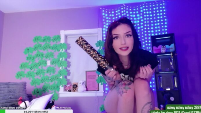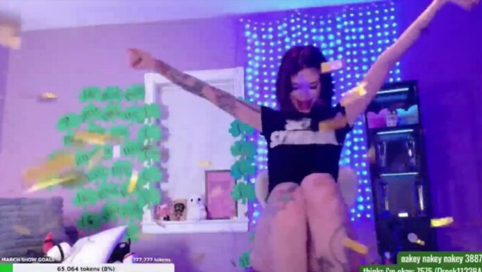 I like that DrocksAriel makes this event feel like a party when more flashes of her naughty bits come, and even with that spectacular moment when she prepares a confetti cannon, and then lets the golden bits fly all over her and the room, covering it in a festive hue as this gorgeous girl continues her dazzling activities.