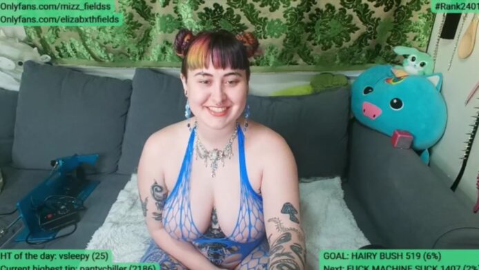 This reveal is possible, by the way, thanks to the skimpy nature of that blue fishnet outfit she wears, which of course has a lot of sexy openings that even show a bit of her beautiful nipples, which is one of the many visual surprises to come on this stunning stream.