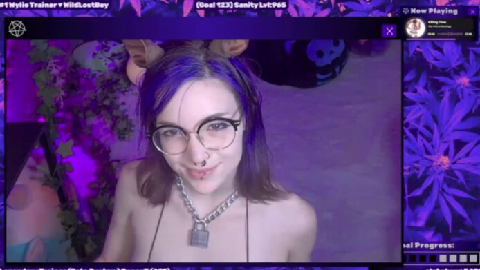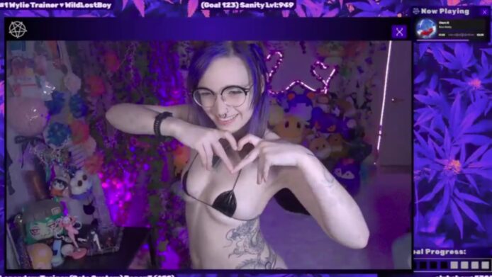 I believe this must be a dream as I see WildWyliePM getting closer to the camera and blowing a cloud of smoke in a very seductive way, which is followed by her stepping back a bit, revealing the outfit she’s wearing for this stream: a spectacular two piece.