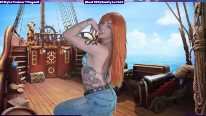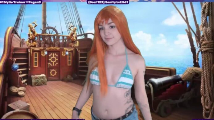 In waves that take my breath away, WildWyliePM poses in her full Nami cosplay, which includes a bikini and tight jeans that make her booty displays an absolute wet dream.